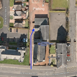 When you arrive, your Satnav (GPS) will lead you to Livingstone Memorial Church it’s the church with the bell tower right on Glasgow Road.